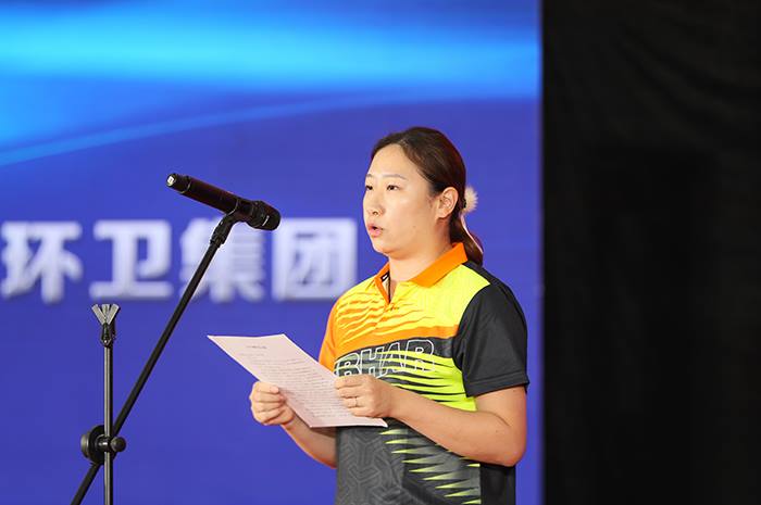 IM电竞乒乓球队队员代表、微环境公司员工盛丹丹发言